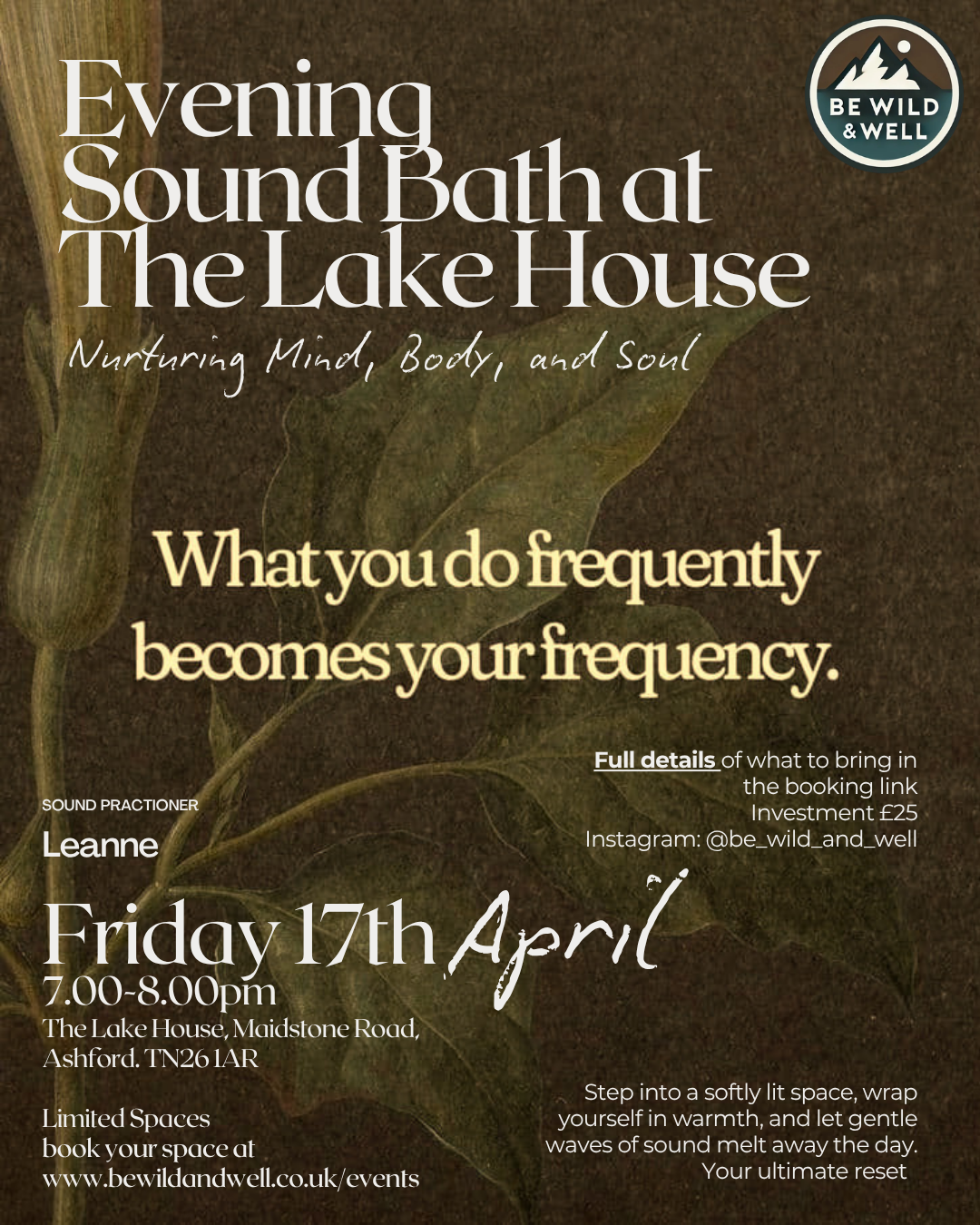 Friday Night Reset: A Candlelit Sound Bath with Be Wild & Well Friday 17th April | 7:00 pm – 8:00 pm Forget the “zen” clichés – this is a practical, powerful 60-minute