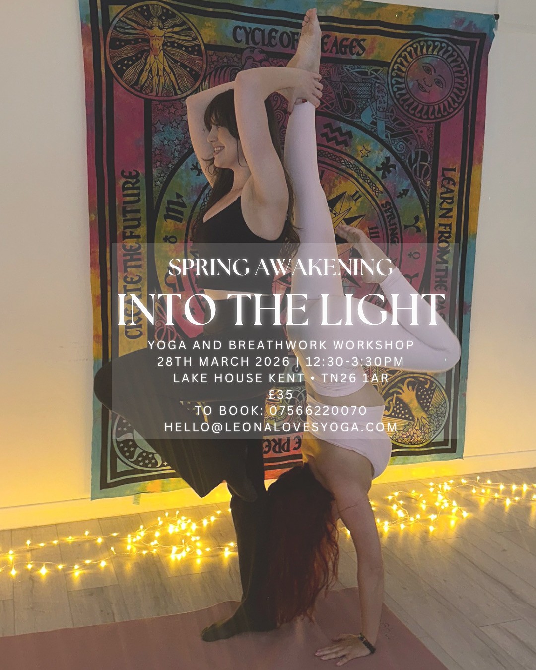 Into the Light A Spring Awakening Yoga and Breathwork Workshop Saturday 28th March 2026 | 12.30–3.30pm Lake House Kent | £35 | Goodie bag included Spring is a time of awakening. As the